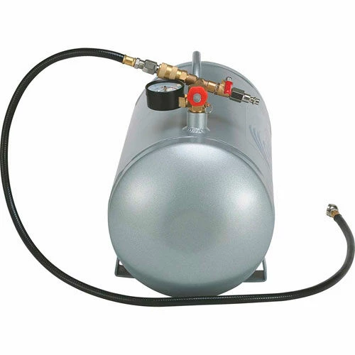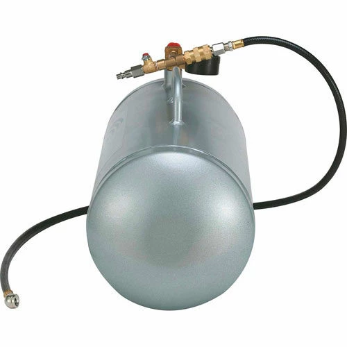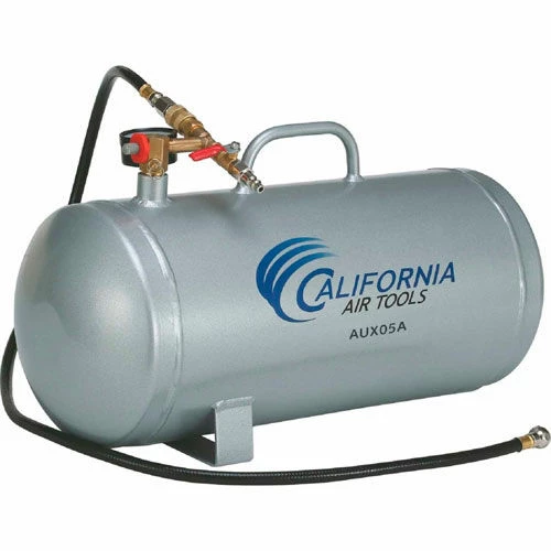 California Air Tools AUX05A – 5 Gallon Aluminum Auxiliary Air Tank is designed for portability and easy to use. The No Rust Aluminum Air Tank is lightweight (8.5 lbs) and easy very easy to carry and transport. California Air Tools auxiliary air tanks are designed to provide an extra supply of air needed for short-term demands such as inflating tires. These auxiliary air tanks provide stable pressure and a constant air flow for purposes such as spray painting. Having the California Air Tools auxiliary air tanks will allow you to have an extra supply of air for more time before the air compressor motor/pump starts to run. The Easy to Use Quick Connect Fittings on the Air Hose and Air Valve allows you to quickly attach the Air Hose to an air compressor and fill the auxiliary air tank without needing extra air fittings. This Easy to Use Quick Connect System also allows you to connect a standard air hose to your air valve for use with air tools. More Air, Less Noise and Easy to Use, California Air Tools Auxiliary Air Tanks!