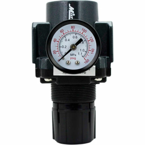 EXELAIR by Milton Simply Better Airline system provides the best solution to manage compressed air. FRL Regulator maintains consistent pressure and prevents overdriving tools. EXELAIR FRL Regulator features 1 5/8″ dial gauge reads in PSI and MPa. This FRL regulator includes mounting bracket with hardware a lockout knob that allows set PSI pressure that ranges 5-125 PSI and Max Air Flow of 212CFM.